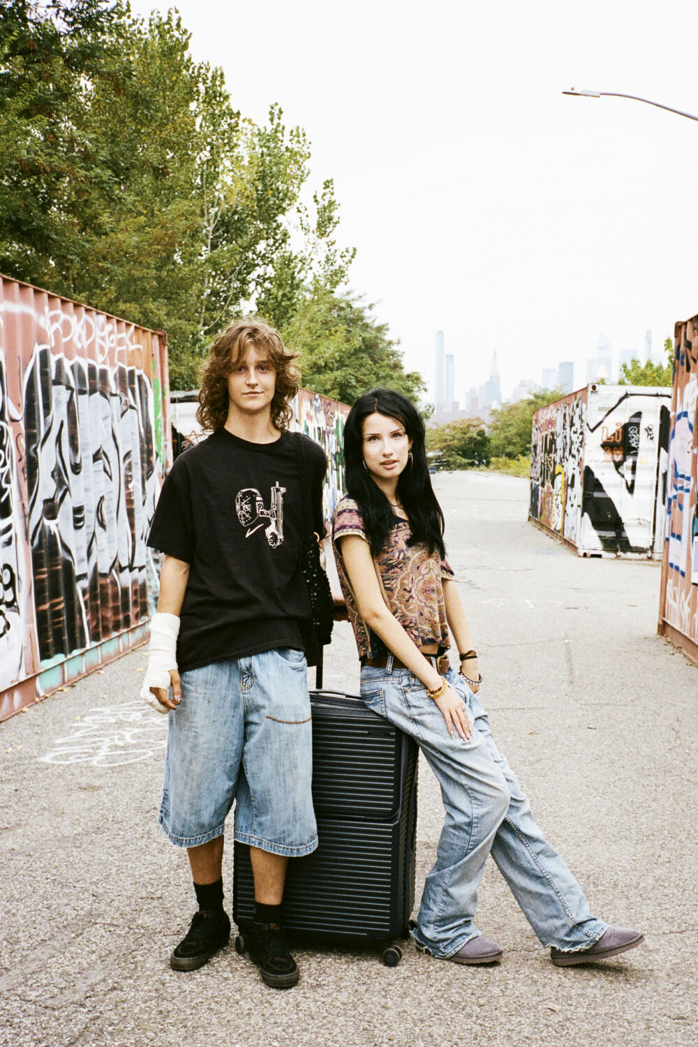 世界中から人が集まるタイムズスクエアやSOHOエリア、観光客が集まる人気スポットもいいけれど、やっぱりNYの魅力は人が見逃しがちな路地裏や住宅街にこそあるのではないだろうか。そこで今回訪れたのは、おしゃれに敏感な若者がよく集まるというBrooklynエリアのGREEN POINT。この場所には流行の先駆けとなるレストランやバー、そしてライブハウスが多く密集していて、川沿いに行けばマンハッタンのミッドタウンを一望できるのも魅力の一つだ。そんな街を歩いていると、腕にギブスを巻いている少年が川沿いでデートをしていたので、気になってつい声をかけてみた。あどけない表情が素敵な二人とイーストリバー沿いにある広場に行ってパシャリ。いつ見返してみても、〈EDGELINK〉と街のユースたちが織りなすストーリーには、愛と優しさが満ち溢れている。