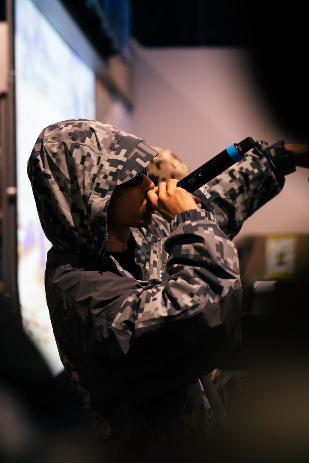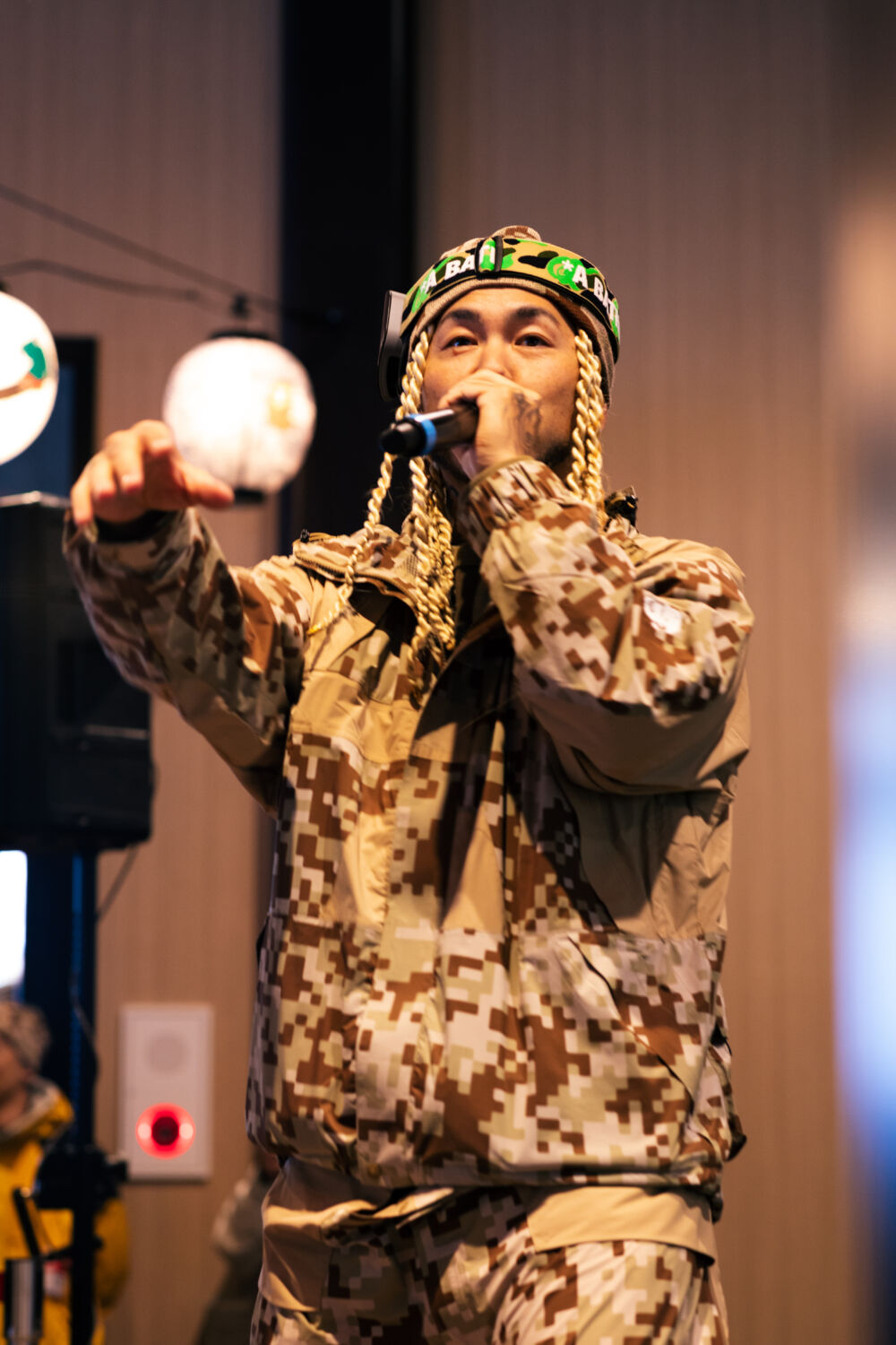 当日会場には、普段からBAPE®とも親交の深い総勢100名程のファミリー達が集い、フードやドリンクの提供、そしてシーンを席巻するKaneeeやSHOによるショットライブからDJパフォーマンスまでが開催され、会場は常時活気に満ち溢れていた。そもそも今回このイベントは、デザイナーの倉石さんが自身の旧友やライダー達が集まれるように札幌で開催されたらしく、世代を問わず、雪板ラバーたちが一同に介す特別な機会となった。ジャンルを越えてオーディエンスが繋がり、一日限りで紡ぎ出されたこのグルーブ感は、これまで様々な道を歩んできた倉石さんだからこそ作りだせたものであり、まさにカルチャーの新時代という言葉に相応しい一日となっただろう。そして、当日限定で上映された今コレクションのムービーには、倉石さんと古くから繋がりのあるデザイナーやアーティスト、そしてライダー達のメッセージが収録されており、今だからこそ知りたいブランドのヒストリーが余すところなく語られていた。ムービーのショートバーションは現在BAPE®のオフィシャルIGにて公開中なので是非ヘッズ達には一度はチェックして頂きたいところだ。カルチャーの未来に懸念を示す人が多くいる中、シーンの先駆者が、改めて巻き起こすムーブメントには、言わずもがなカルチャーへの愛とリスペクトが詰まっている。