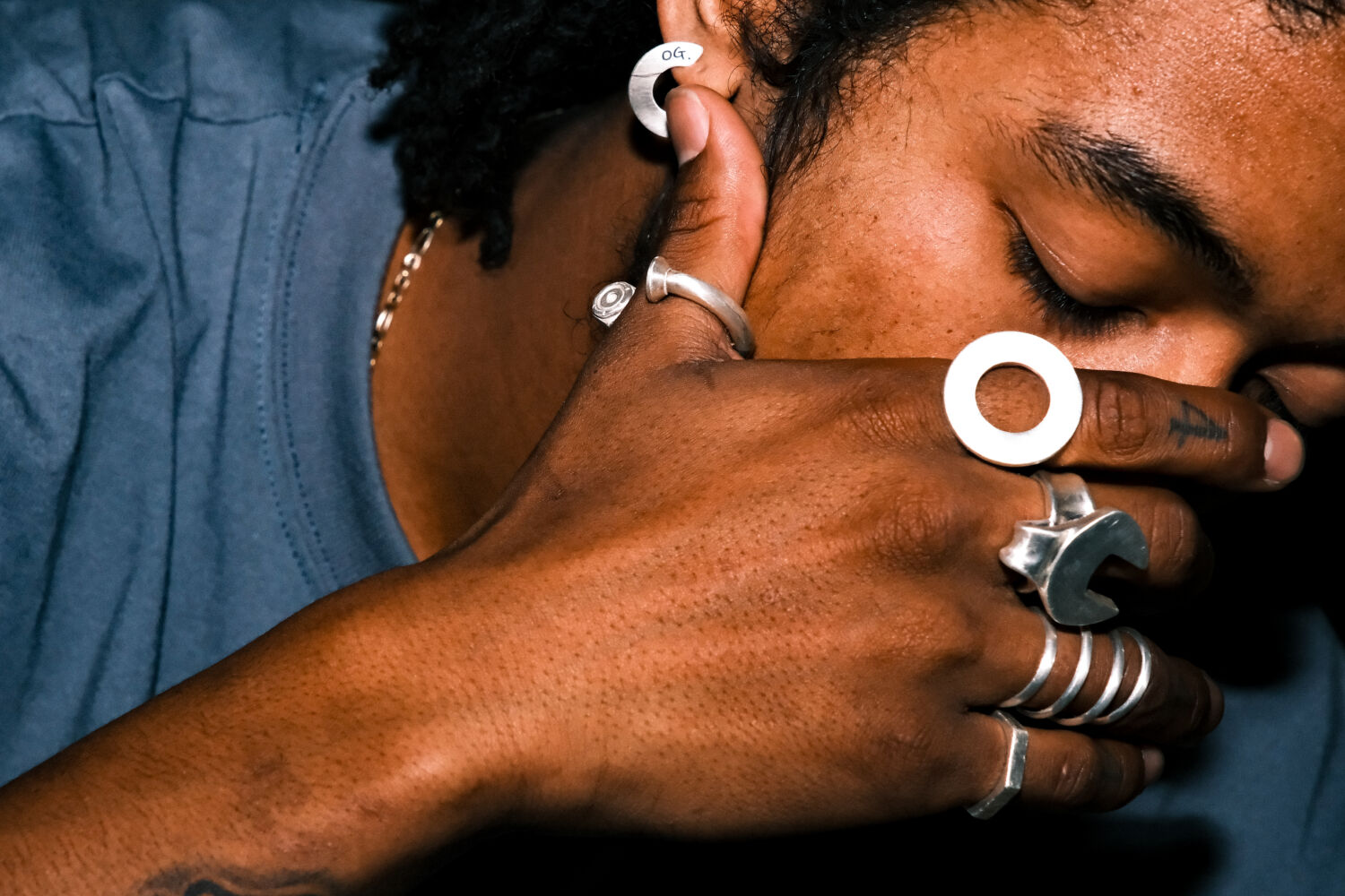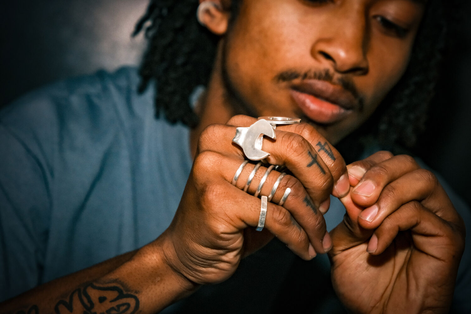 賢人:オレは普段アクセサリーはあんまりつけてこなかったけど、ベアリングの壊れたゴミを指につけてることもあったから、このブランドはその延長にある感じで自分も自然につけられるんです。